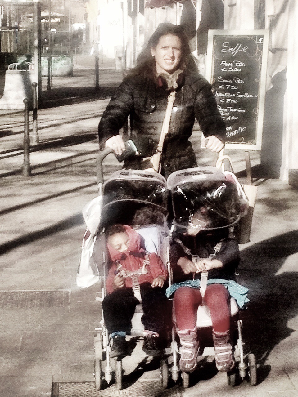 I Googled the title of this blogpost incessantly before we set off on our travels. I was prepared to impulsively purchase an entirely new buggy if someone had told me the answer. But I could find very little. I travelled around Europe by train as a teenager and had vague memories of very narrow doors and steep steps to get on to most trains in Western Europe. Would the side-by-side double Maclaren I had cut it? Would I not be better with one of those two-tiered buggies like the Phil and Ted? What would I do if both children were asleep when it came to getting on? How would I lift it? Would it go through the door. What would I do with it when I was on the train? In the end after much umming and ahhing I decided to stick with the Maclaren’s but to upgrade my hoodless one with a better version that had hoods and a raincover (we are travelling in January and February after all). The main advantage of an umbrella-fold double buggy is that it folds and can be stashed on a luggage rack if there is one available, or leaning on an empty seat. And I am fortunate in that I have two walkers. So if they are awake they can climb on to the train themselves, or I can keep the baby in the Ergo baby carrier, that I have also brought along with me. We can then load on the bags and return to the platform to fold up the buggy and lift that on too. I am very glad that I didn’t decide on a more bulky buggy like the Phil and Teds, because it is more troublesome to fold and there just isn’t room to store it in the carriage (I haven’t seen any such prams on the trains so far). I will update this blog in a few weeks time to let you know how I’ve been getting on with it.