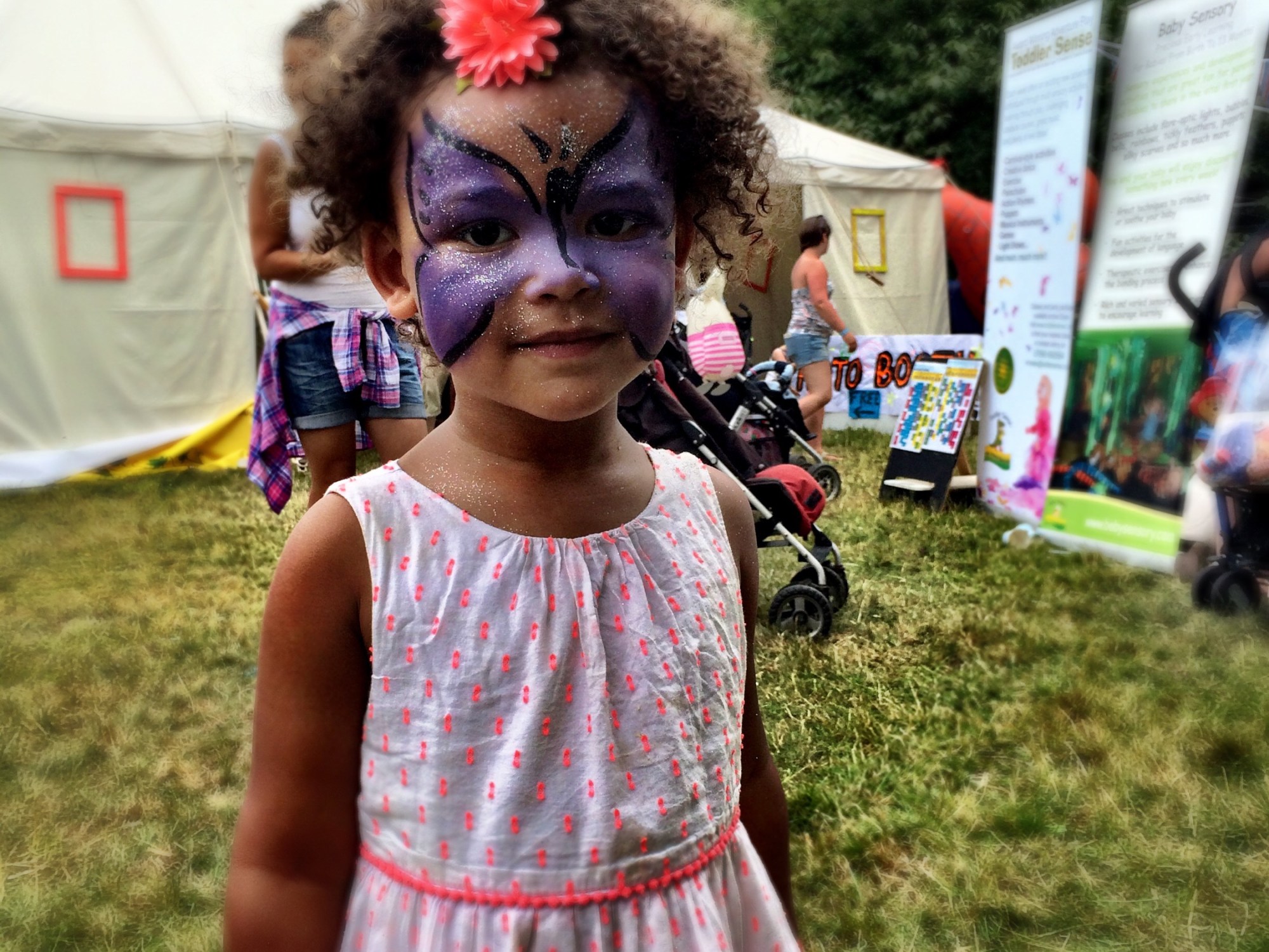 The organised activities included lots of singing and dancing, gymnastics, drumming, plenty of theatre and live entertainment – including some awe-inspiring stilt walkers that amazed my two-year-old. But what I liked best was the whole feel of the place. Unlike other festivals I’ve been to, it didn’t feel like everyone wanted you to part with as much money as possible. There were free bottles of water and comfortable chairs in the nursing tent, the food and drink were reasonably priced (we had a £5 kids meal of mac and cheese, breadsticks and juice, which was enough to feed both my children – and I indulged in a £3.50 tray of sweet potato fries). When the string came off the helium balloon animal I had bought my son (which at £4 was the most expensive item I bought other than the food), the woman at the stall happily blew up another one and replaced it fee of charge. All these small things help make a parent relaxed in an environment which, if handled differently, could be very stressful.